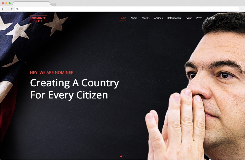 We found a totally cool article that I thought you could use. It’s by Templified and it’s called Nominee, Political Campaigns WordPress Theme.