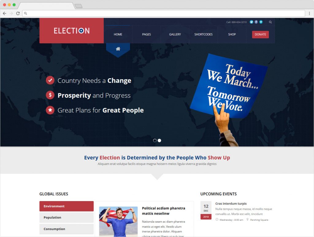 Here’s a bunch of great new themes which you might want to see. Templified made it and it’s called Election, WordPress Theme for Election Campaigns.