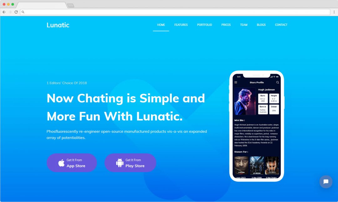 Templified Lunatic App Landing Page Theme for WordPress
