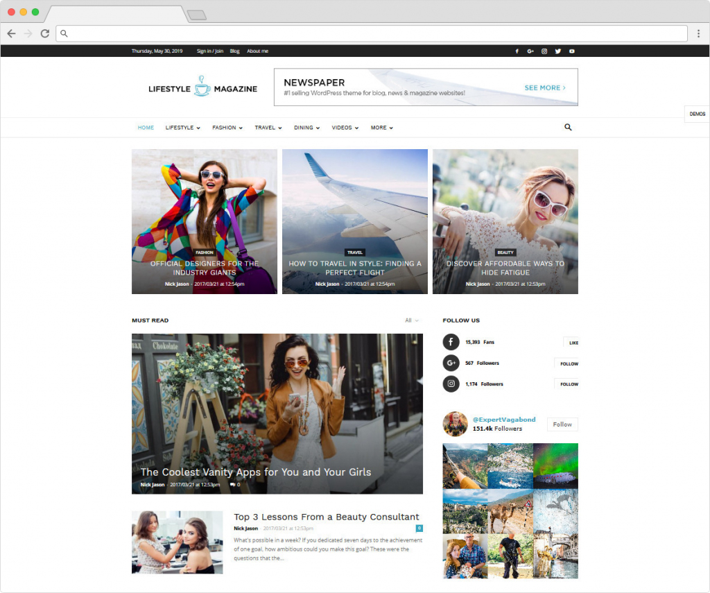 Newspaper Online Lifestyle Magazine WordPress Theme