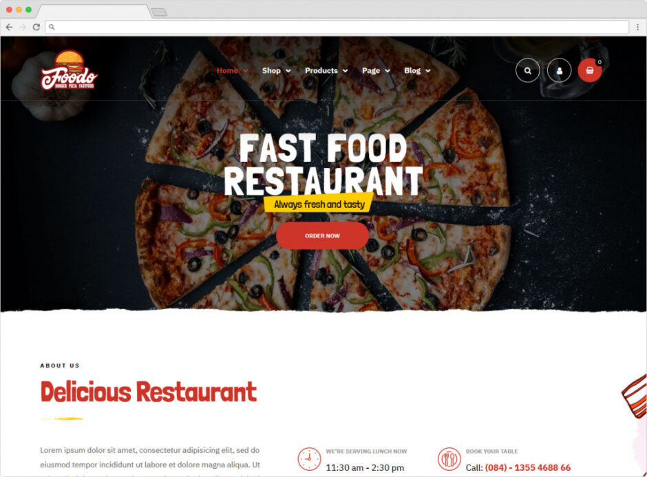 Foodo, WordPress Fast Food Restaurant Theme